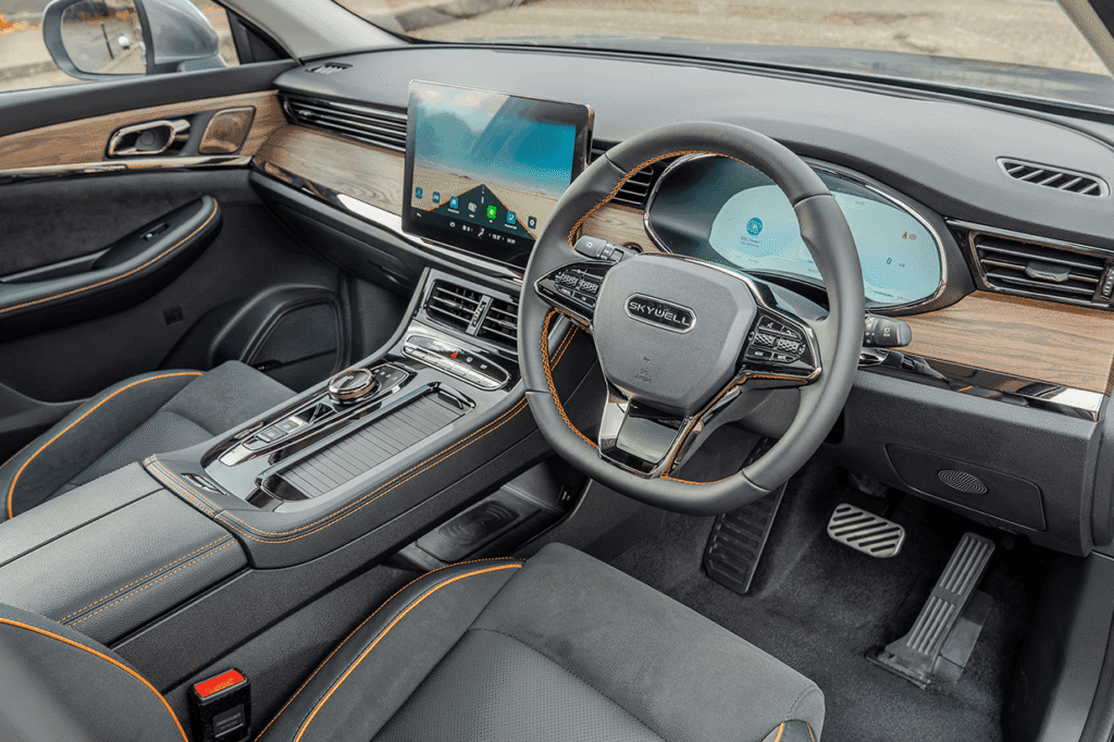 The sleek face of the BE11 is matched at the rear with its aero-efficient tailgate spoiler. And now the 2026MY BE11 is enhanced, featuring Skywell’s new suite of advanced driver assistance systems, including Lane Keep Assist, Blind Spot Monitoring, and Emergency Brake Assist.